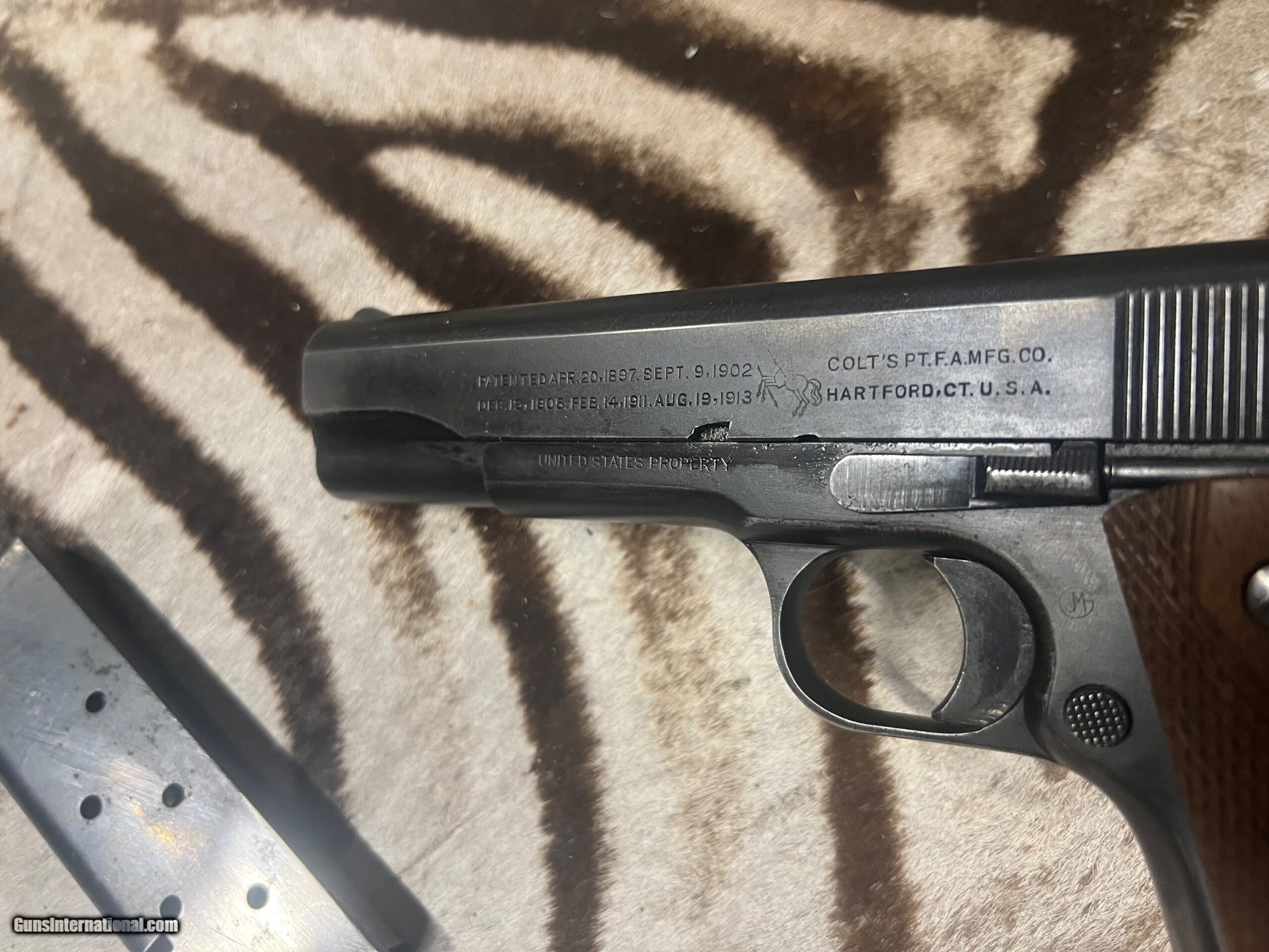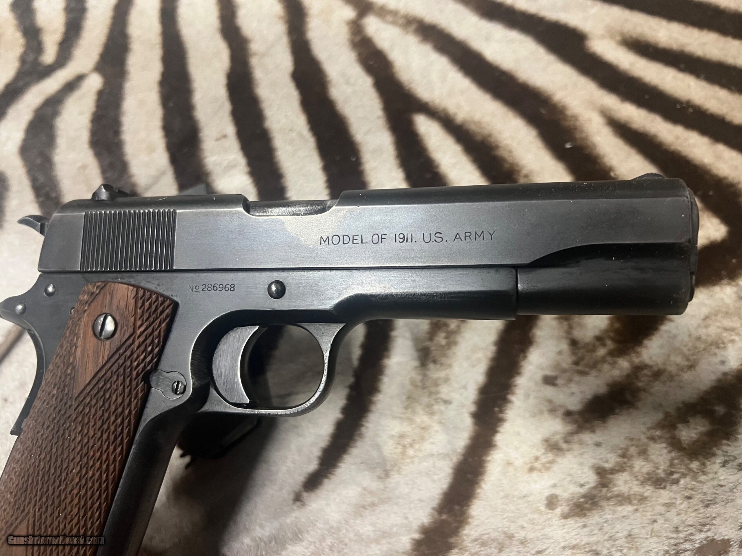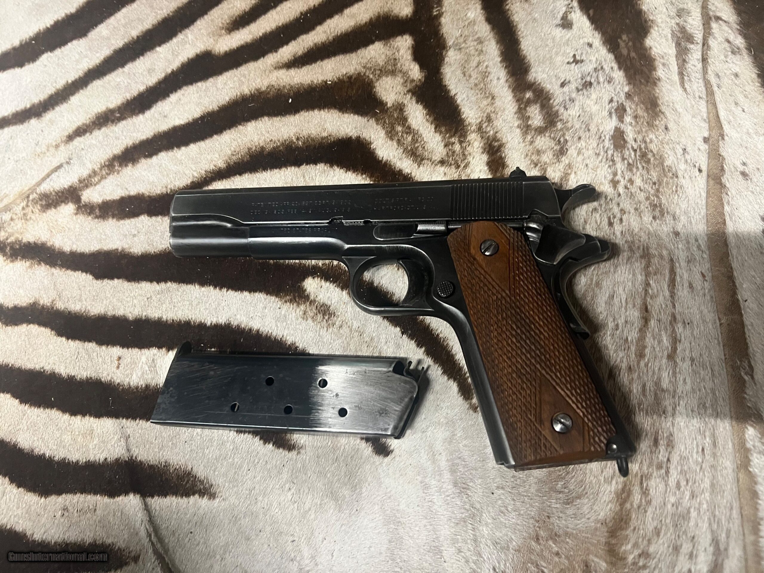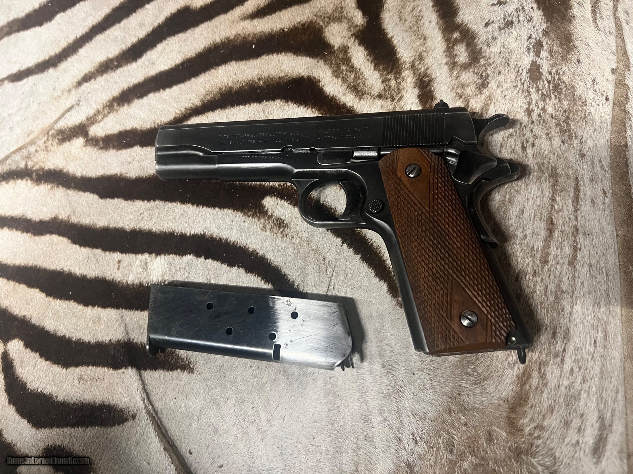 1918 year. The pistol is on consignment with a collection and it appears to be all original with all the parts having the right stampings. The original rust blueing is about 60 to 70 % with some lighter spots in the high traffic areas. No rust anywhere on the gun with excellent bore and perfect working condition.