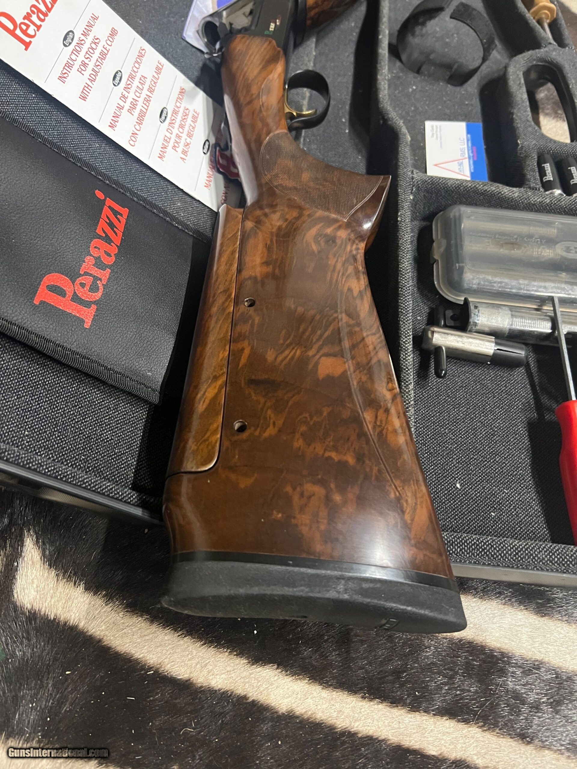 Perazzi HT with 28-1/2″ barrel (30″ with extended chokes) Drop out trigger, removable Briley extended choke (set of six) level four left handed factory adjustable stock