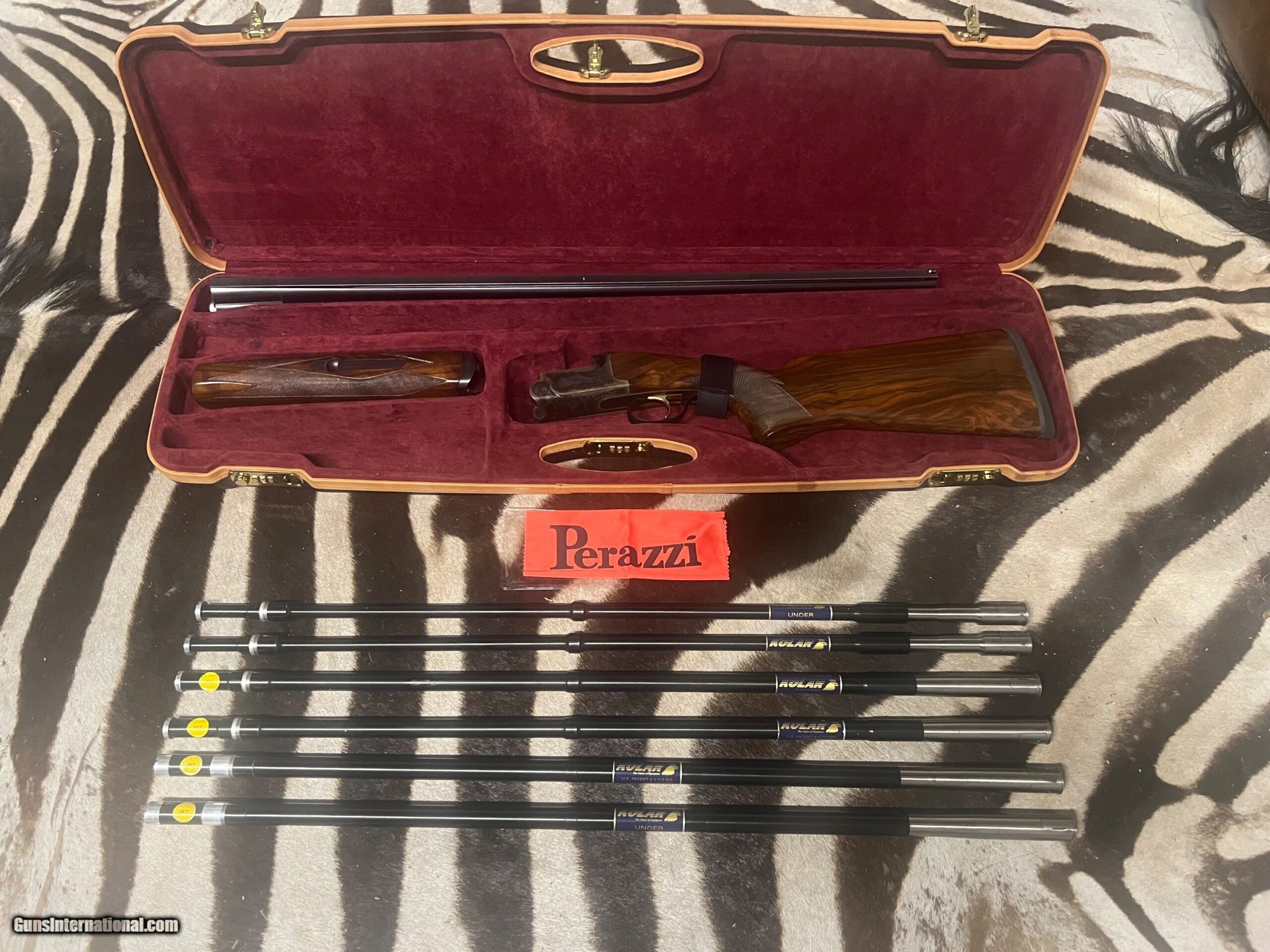 Perazzi MX8 factory Case Colored 29-1/2″ barrel with fixed chokes (SK-SK) with Kolar sub gauge tube set (fitted by Kolar) Removable trigger.